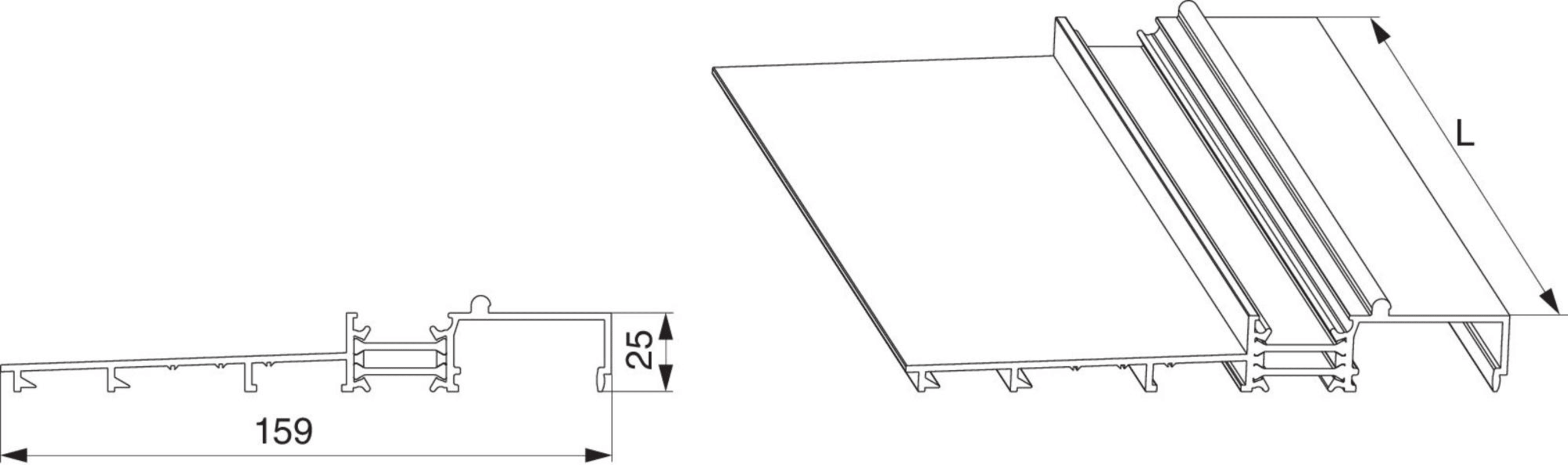 Meesenburg Artikelbezeichnung: RAHMENABDECKUNG MIT THERMISCHER TRENNUNG B=159 MM H=25 MM L=2.500MM BR, N22153