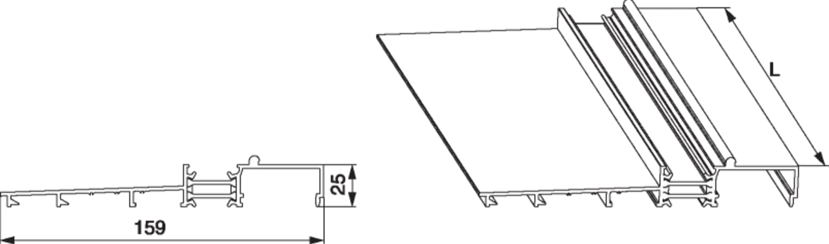 Rahmenabdeckung HS-TT in Alu mit thermischer Trennung B=159mm H=20,5mm L=3.500mm silber F1