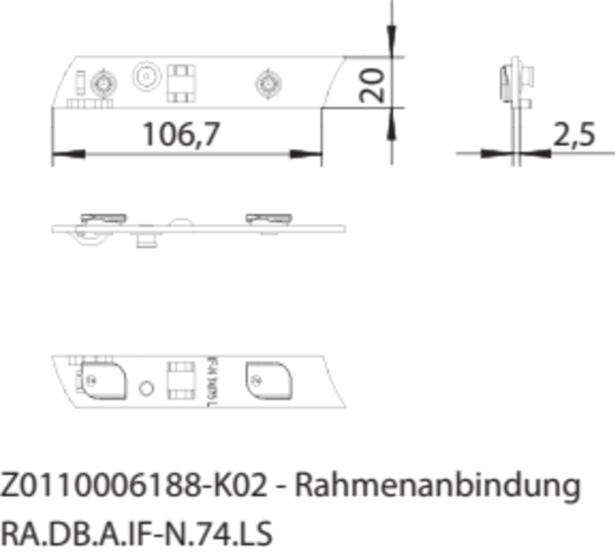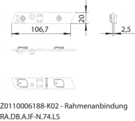 WINKHAUS Rahmenanbindung DB.A.IF-N.74; Ausführung: für Drehbegrenzer; Material: Stahl; Befestigungsart: klemmbar; Basis: Rahmenanbindung; Farbe: silber; Einsatzbereich: Drehkipp; Oberfläche: verzinkt;