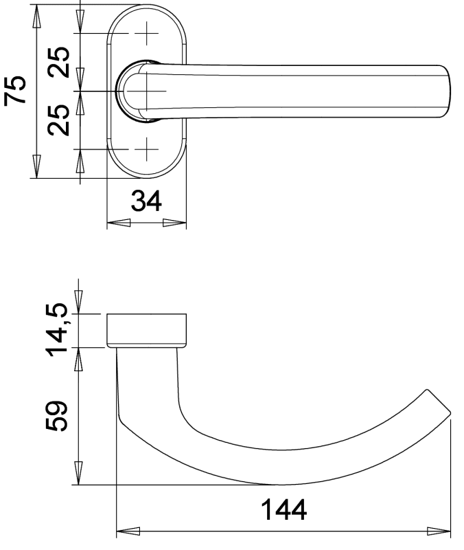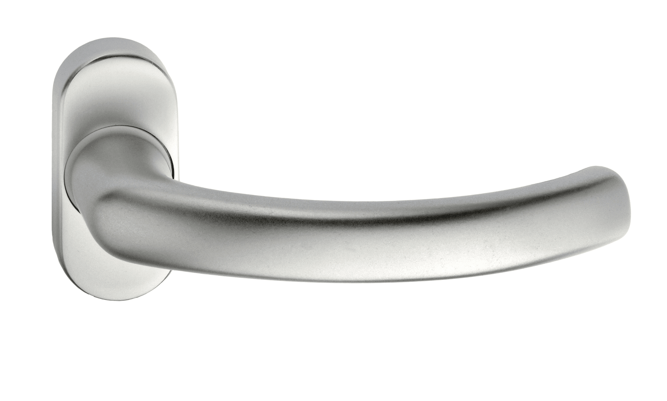 • Drücker auf Ovalrosette • Drücker fest-drehbar gelagert, mit Rückholmechanik • Clip-Deckrosette auf Stahl-Unterkonstruktion • Einliegende Kunststoffrasten • Verdeckte M5-Verschraubung