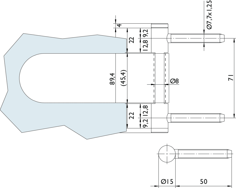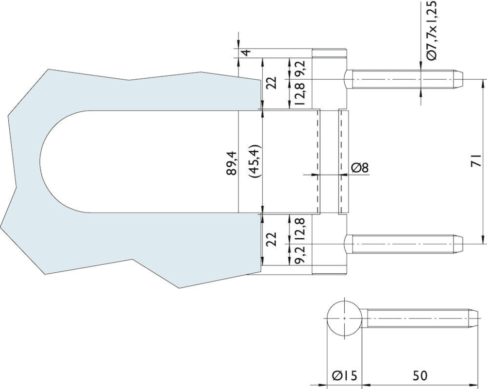 Rahmenteilpaar für Holz-Futter und Blockzarge, 6842 WF wartungsfrei, Länge Einschraubbolzen 40 mm, für 2tlg. Glastürband /2 Rahment. inkl. Bandbolzen, inkl. 2 Kunststoffbuchsen 10 x 8 x 15 mm, schwarz
