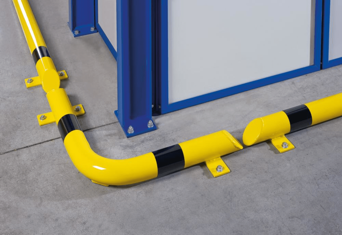 Rammschutzbalken • Sicherung von Regalen und Schränken vor Anfahrschäden • Stoppt innerbetrieblich Transportgeräte • Abstandhalter • Ungehinderter Zugang zu Schutzbereichen • Zinkgrundiert • Farbe: pulverbeschichtet, RAL 1018 zinkgelb, schwarze Warnmarkierung Lieferung: Mit Hülsenankern für Bodenmontage auf Beton-Untergrund.