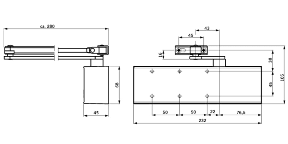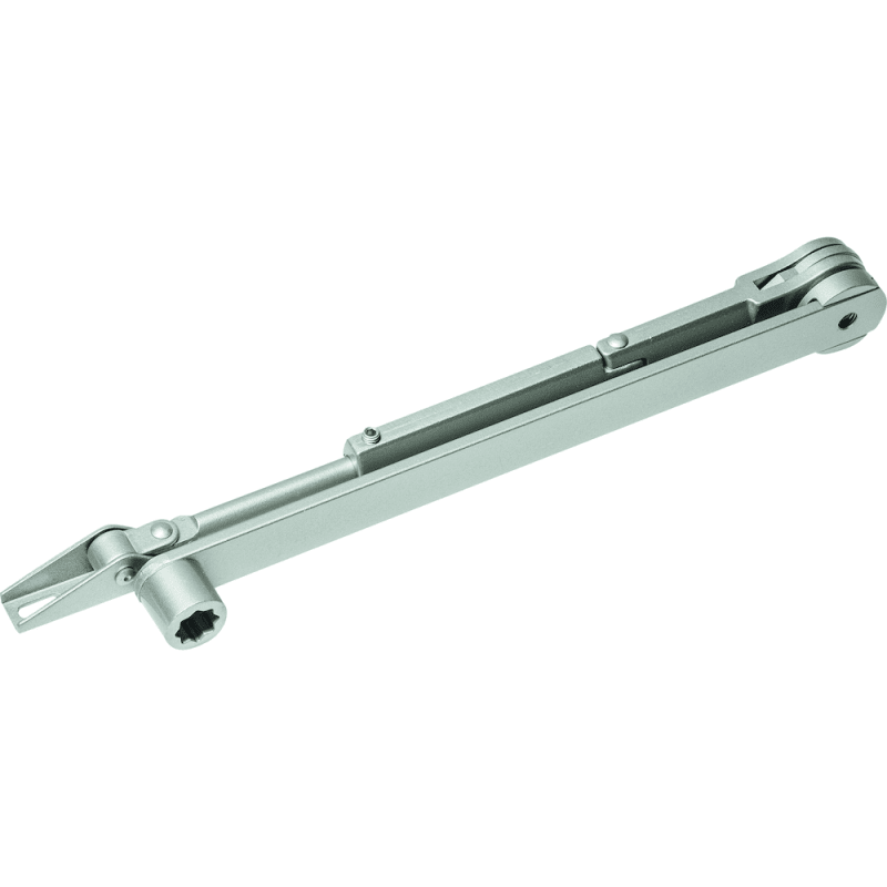 Bei Verwendung des Türschließers mit Rastfeststellarm kann die Tür an einem gewünschten Punkt (bis ca. 150°) festgestellt werden. Die Feststellung im Rastfeststellarm lässt sich nicht ausschalten! Ac