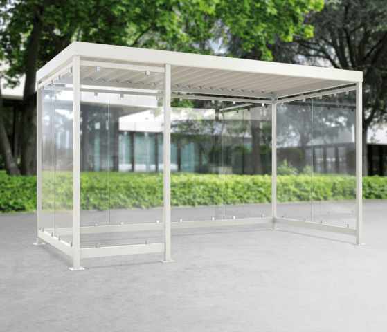 Raucherunterstand, Modell Köln, K4 c/b • Modularer, transparenter Raucherraum • Komplettlösung: fertig vormontiert, bequeme Aufstellung mit Kran • LGA-typengeprüft: ausgelegt auf hohe Schneelast: 1,9