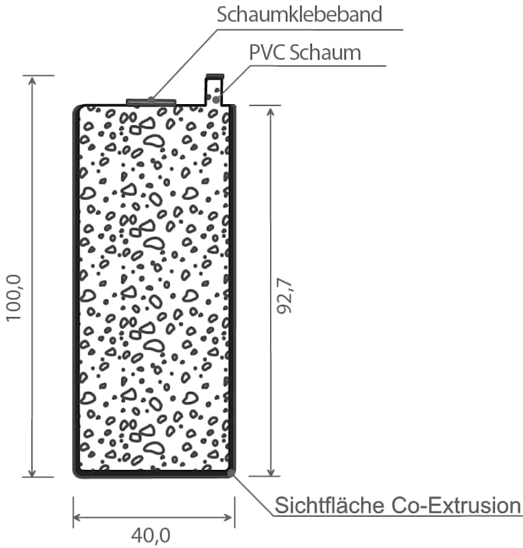 Rehau-Bodeneinstand 100 mm Lg. 6,50 m Weiß, 100x40 mm PVC Schaum, mit SK für 80er & 86er Nutzhöhe: ca. 92,7 mm