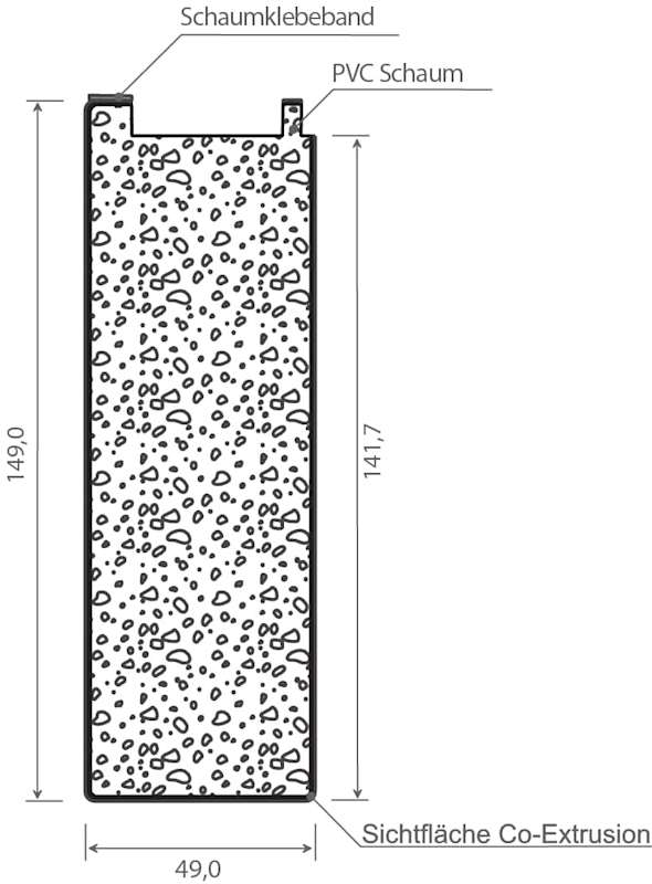 Rehau-Bodeneinstand 150 mm SK Lg. 6,50 m Weiß, 149x49 mm PVC Schaum für 70er & 80er & 86er Nutzhöhe: ca. 141,7 mm