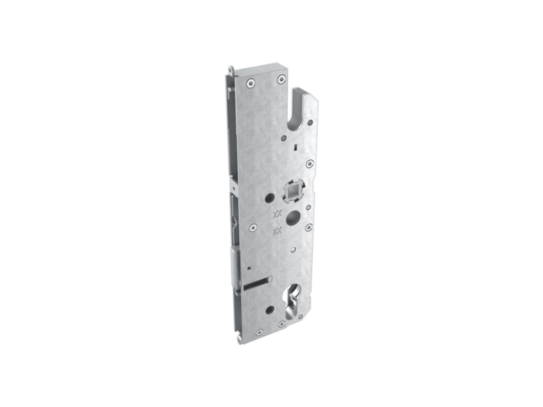 HAUPTSCHLOSS-SET BESTEHEND AUS: HAUPTSCHLOSS-TYP H, PZW, 45/88/8,5 MM, MIT ANGESCHRAEGTER SOFTLOCKFALLE, LOSER 2 MM ABGESETZTER SOFTLOCKFALLE, 3 BEFESTIGUNGSSCHRAUBEN, MIT MARKIERUNGSPUNKT DUNKELBLAU VERSEHEN