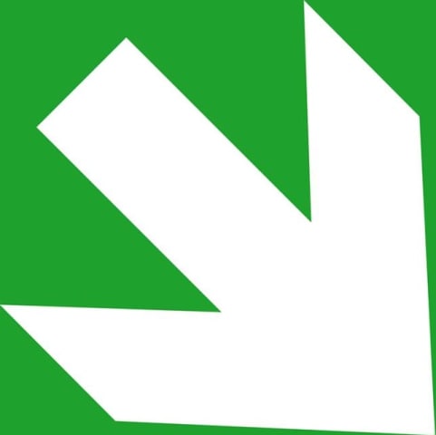 Rettungsschild, Zusatzschild Richtungspfeil, schräg
