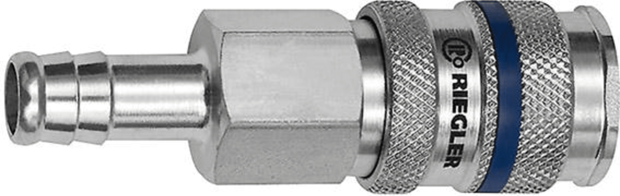 Schnellverschlusskupplung NW 7,8, Stahl• Einseitig absperrende Einhand-Schnellverschlusskupplung • Hohe Durchflusswerte • Material Gehäuse, Hülse: Stahl, verzinkt • Material Feder: Edelstahl • Mat