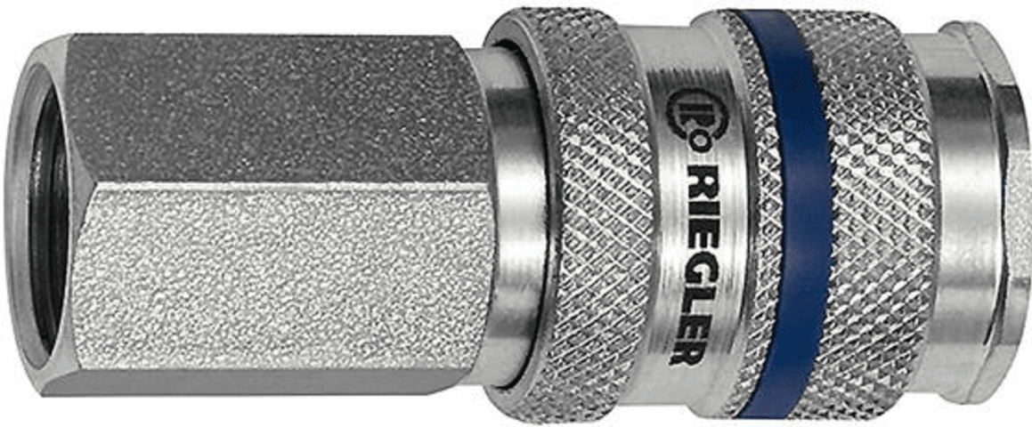 Schnellverschlusskupplung NW 7,8, Stahl• Einseitig absperrende Einhand-Schnellverschlusskupplung • Hohe Durchflusswerte • Material Gehäuse, Hülse: Stahl, verzinkt • Material Feder: Edelstahl • Mat