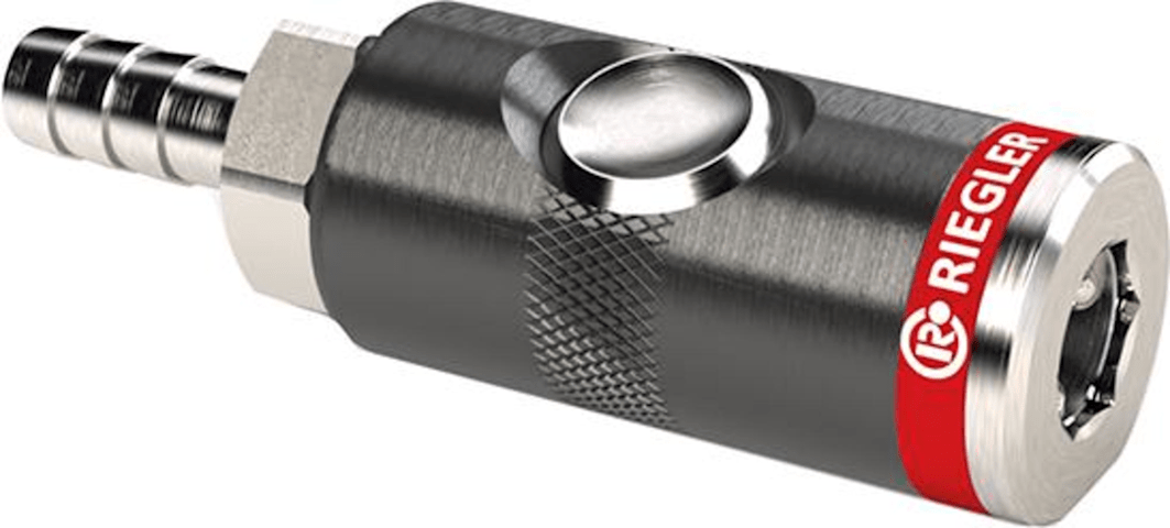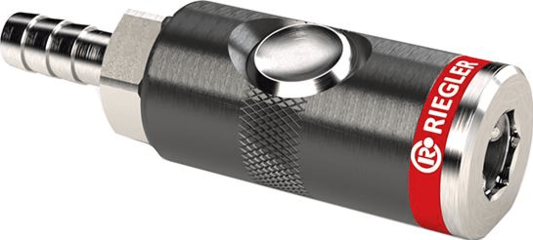 Sicherheits-Schnellkupplung, mit Druckknopf, NW 7,4, Schlauchtülle• Druckknopf-Sicherheitskupplung • Drehbar • Hochwertige, robuste und langlebige Sicherheitsausführung • Mit einer Hand bedienbare