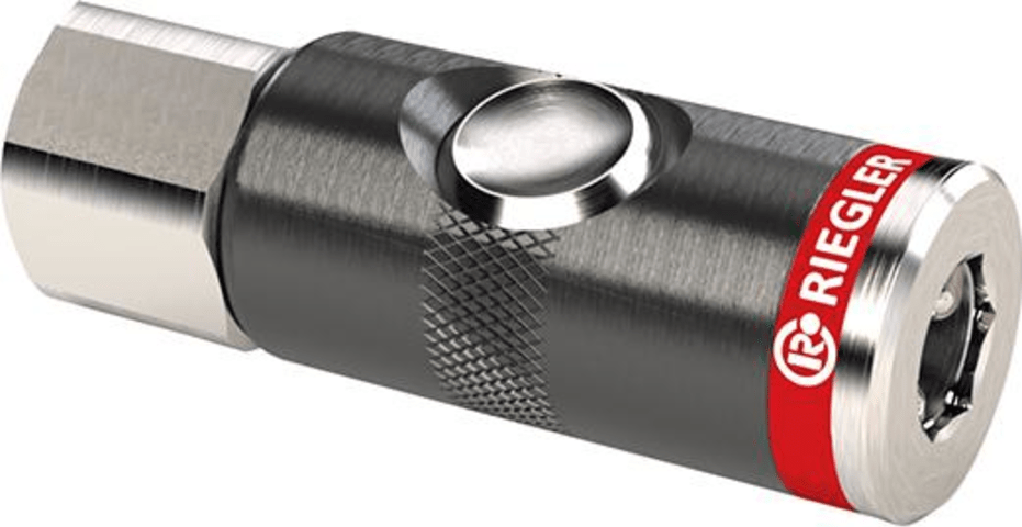 Sicherheits-Schnellkupplung, mit Druckknopf, NW 7,4, Innengewinde• Druckknopf-Sicherheitskupplung • Drehbar • Hochwertige, robuste und langlebige Sicherheitsausführung • Mit einer Hand bedienbare S