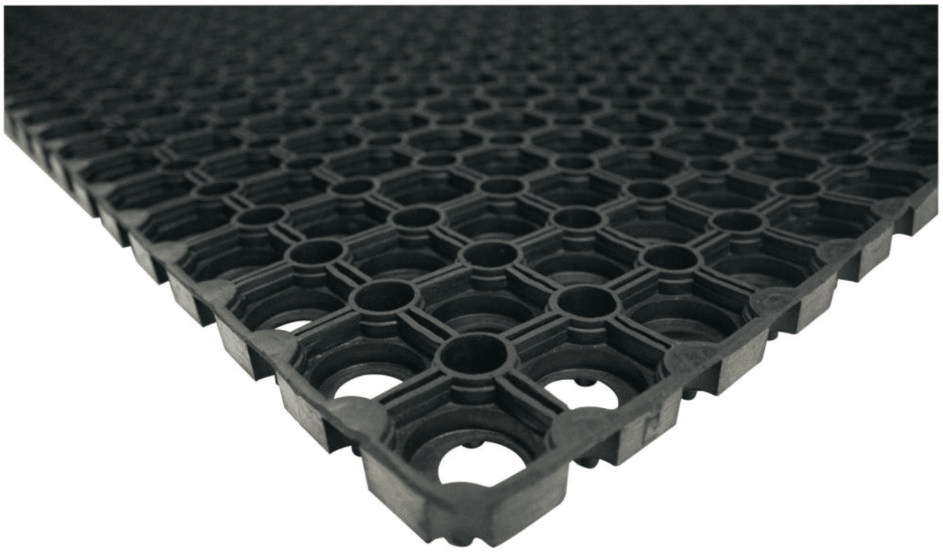 Ringmatte • Zur Aufnahme von grobem Schmutz in anspruchsvoller Umgebung • Rutschsicherheit: angehobene Oberfläche für gesteigerte Rutschsicherheit • Rutschhemmung: R10 nach EN 13552 • Schmutz wird von der durchbrochenen Oberfläche aufgenommen • Material: Gummi