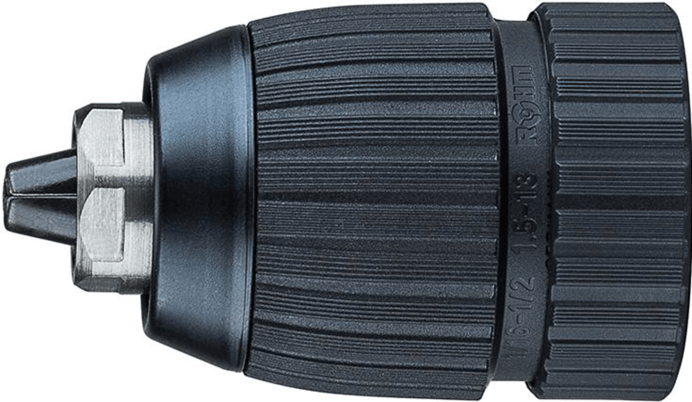 • Schlagbohrfestes Schnellspann-Bohrfutter mit Radialverriegelung und Kunststoffhülse