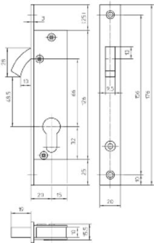 Rohrrahmen-Einsteckschloss 1627-PZ/20-20-K-41