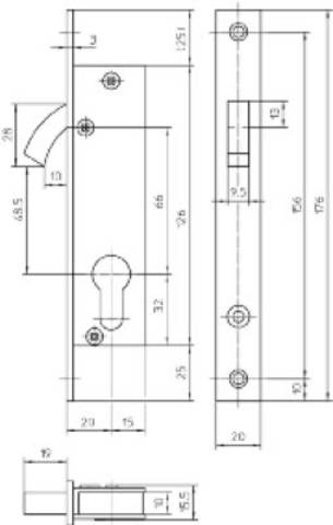 Rohrrahmen-Einsteckschloss 1627-PZ/20-20-K-31-M