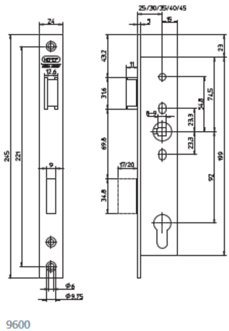 Meesenburg Artikelbezeichnung: ROHRRAHMENSCHLOSS 9603/07 35 MM PZW NIRO