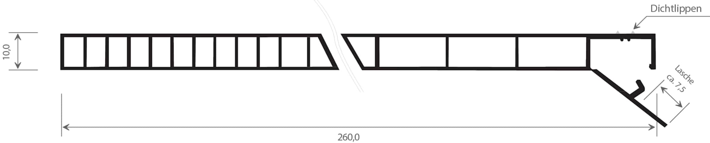 Rollladenkastendeckel 260 mm Lg. 6,00 m Weiß, ohne Schaum, VE: 30 m