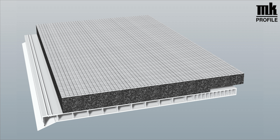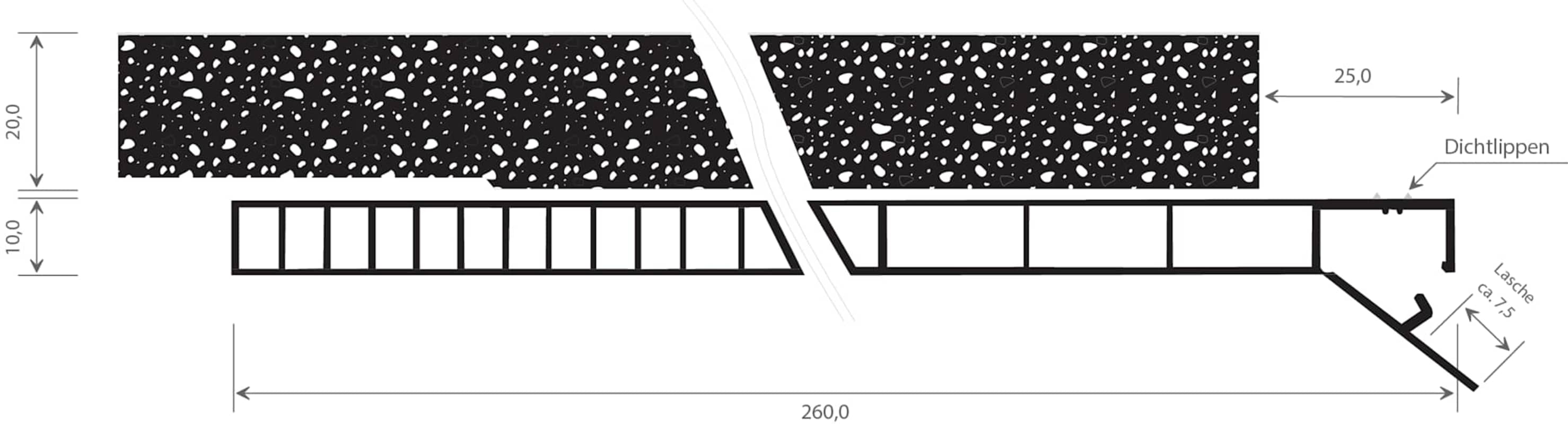 Rollladenkastendeckel 260 mm Lg. 6,00 m Weiß, mit 20 mm Flex-Schaum 97 mm versetzt von vorne VE: 18 m