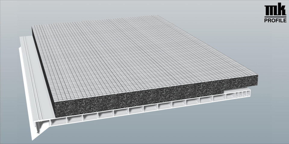 Rollladenkastendeckel 280 mm Lg. 6,00 m Weiß, mit 20 mm Flex-Schaum 97 mm versetzt von vorne VE: 18 m