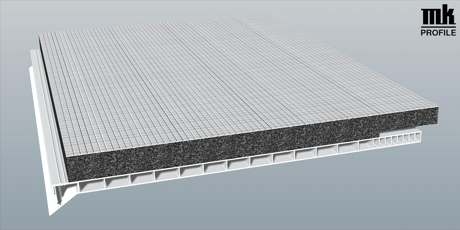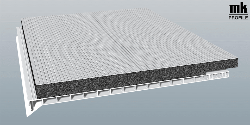 Rollladenkastendeckel 300 mm Lg. 6,00 m Weiß, mit 20 mm Flex-Schaum 12 mm versetzt von vorne VE: 18 m