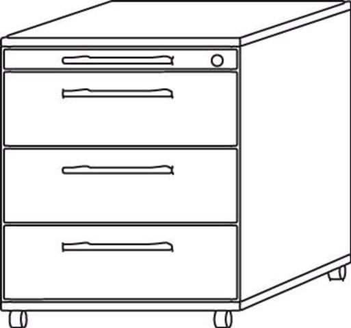 Rollcontainer zur Schreibtischserie O, 3 Schubfächer