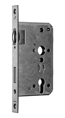 Kastenmaße nach DIN 18 251, Schlosskasten: verzinkt, Falle: Stahl verzinkt, Rolle aus Messing, Riegel: Stahl verzinkt,