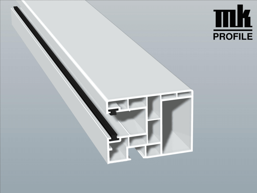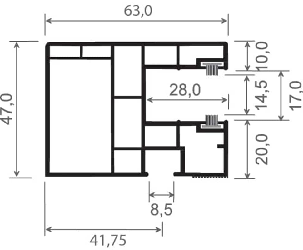 Rollladenführung 63x47 mm Lg. 6,00 m Weiß, mit zwei grauen Bürsten, VE: 36 m