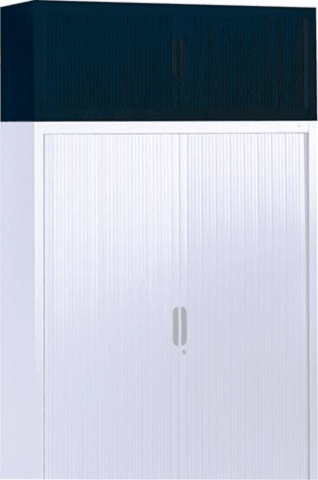 Rollladen-Aufsatzschrank • Korpus: Stahlkonstruktion mit hochwertiger Einbrennbeschichtung • Rollladen: aus durchgehenden Kunststoffmatten (recycelbar), leichtgängig und geräuscharm, verschwinden vollständig im Korpus • Zylinderschloss, mit 2 Schlüsseln • Ordnerhöhe: 1 Hinweis: Fertig montiert–kein Aufbauen notwendig!