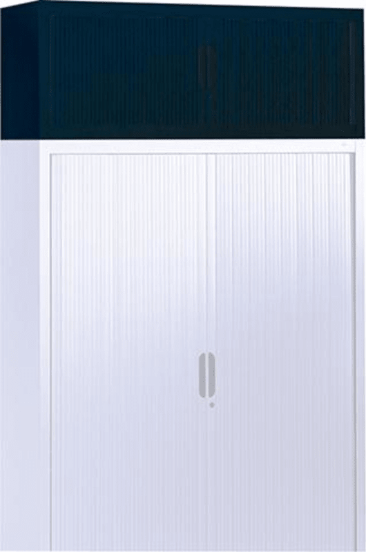 Rollladen-Aufsatzschrank • Korpus: Stahlkonstruktion mit hochwertiger Einbrennbeschichtung • Rollladen: aus durchgehenden Kunststoffmatten (recycelbar), leichtgängig und geräuscharm, verschwinden vollständig im Korpus • Zylinderschloss, mit 2 Schlüsseln • Ordnerhöhe: 1 Hinweis: Fertig montiert–kein Aufbauen notwendig!