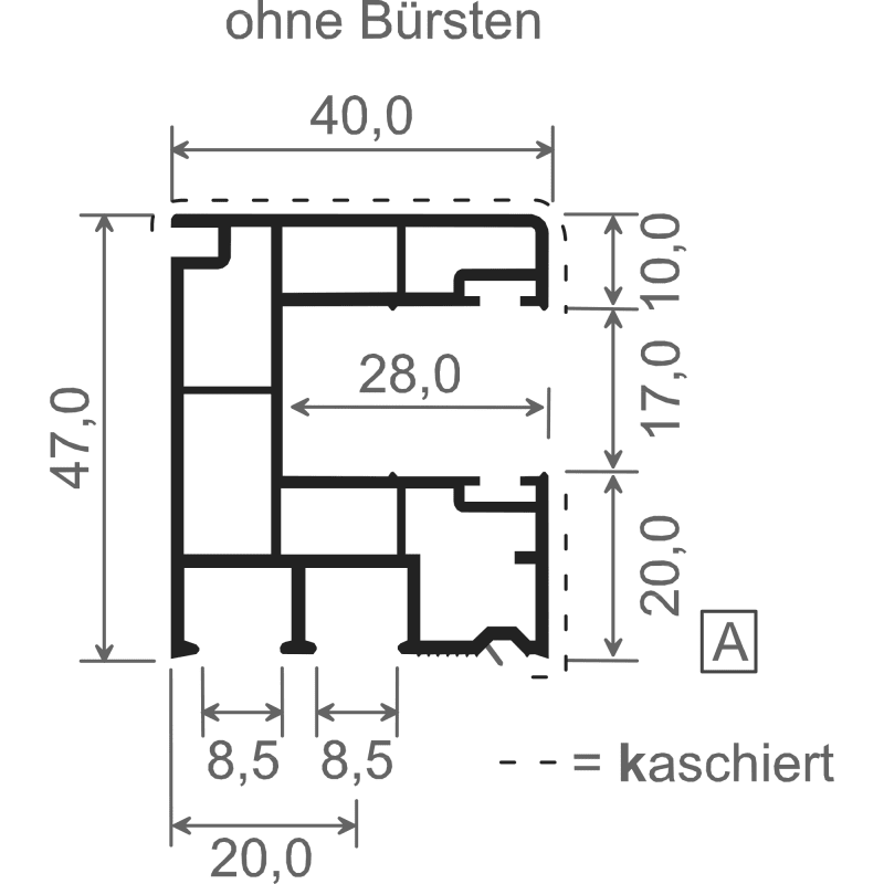 Rollladenführung 40x47 mm Lg. 6,50 m foliert, mit zwei schwarzen Bürsten GK Grau 70 1605-167 ANTHRAZITGRAU [57]