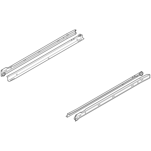 Standard-Teilauszug • Korpus- und Ladenschienen links/rechts • BLUMATIC-Selbstschließtechnik (230M, bzw. Rückhaltesitz (230E) • Kunststoffbeschichtet, Cremeweiß (RAL 9001) Belastbarkeit dyn. 25 kg • Auszugsarretierung (ab Nennlänge NL 300 mm) • Einseitige Zwangsführung