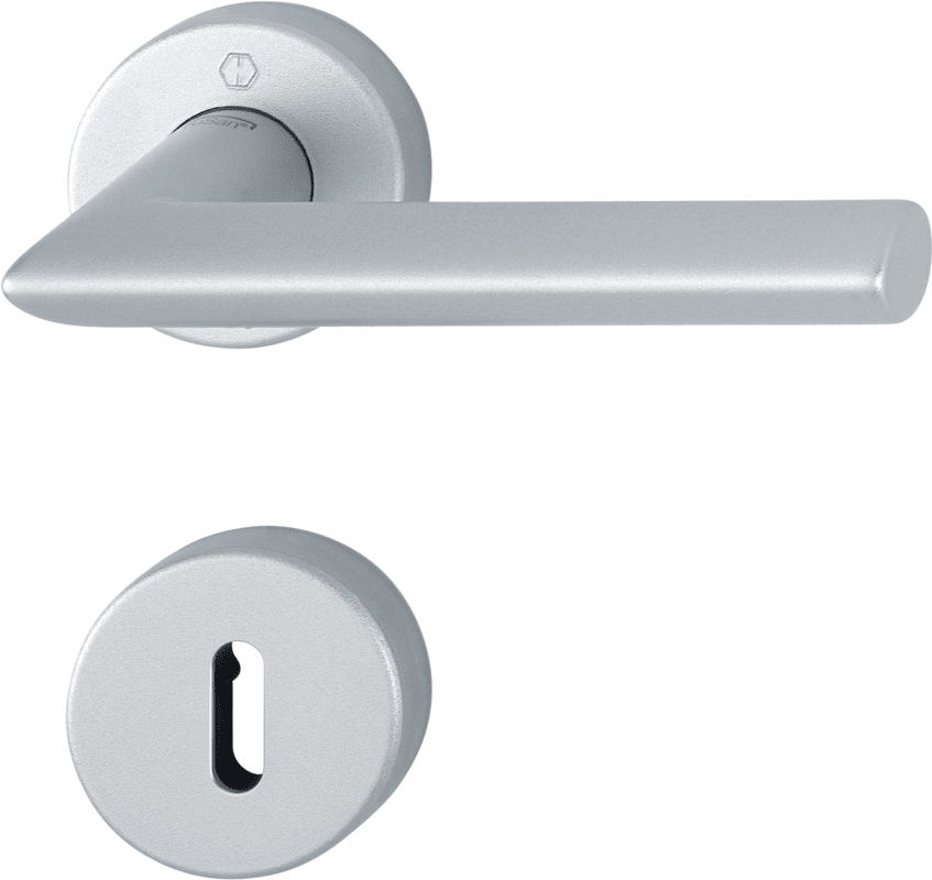 HOPPE Drückergarnitur Stockholm 1140/42H/42HKVS, Rosette, rund, Buntbart gelocht, Vierkant 8mm, DIN Links-Rechts, Türstärke 40 - 45mm, mit Stütznocken, natur matt-SecuSan eloxiert festdrehbar