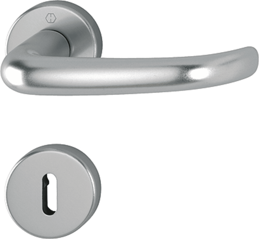 HOPPE Drückergarnitur San Francisco 1301/42KV/42KVS, Rosette, rund, Buntbart gelocht, Vierkant 8mm, DIN Links-Rechts, Türstärke 37 - 42mm, mit Stütznocken, stahlfarbig eloxiert mit Rückholfeder