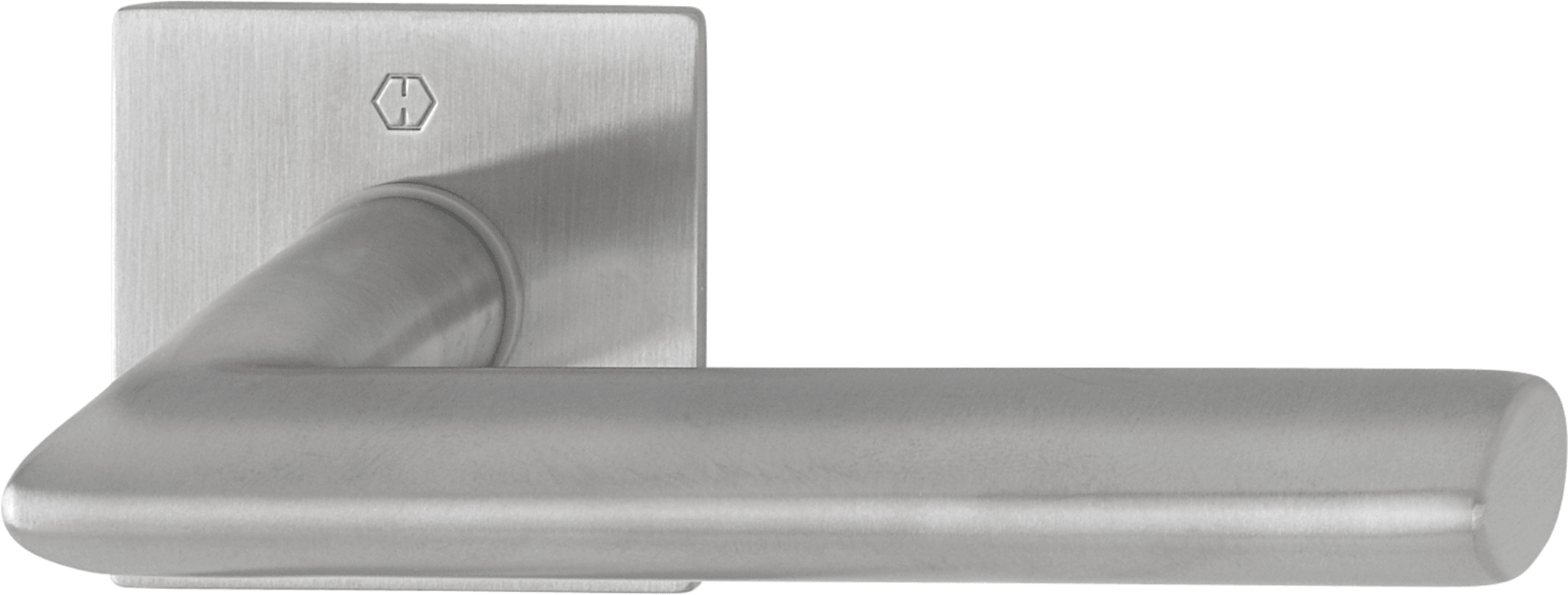 HOPPE Drückergarnitur Stockholm E1140Z/848N, ohne Schlüsselrosette, eckig, Vierkant 8mm, DIN Links-Rechts, Türstärke 35 - 45mm, mit Stütznocken, edelstahl matt mit Rückholfeder