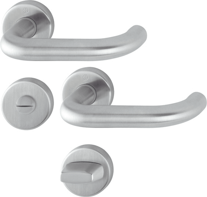 HOPPE Drückergarnitur Paris E138Z/42KV, ohne Schlüsselrosette, rund, Vierkant 8mm, DIN Links-Rechts, Türstärke 37 - 42mm, mit Stütznocken, edelstahl matt mit Rückholfeder