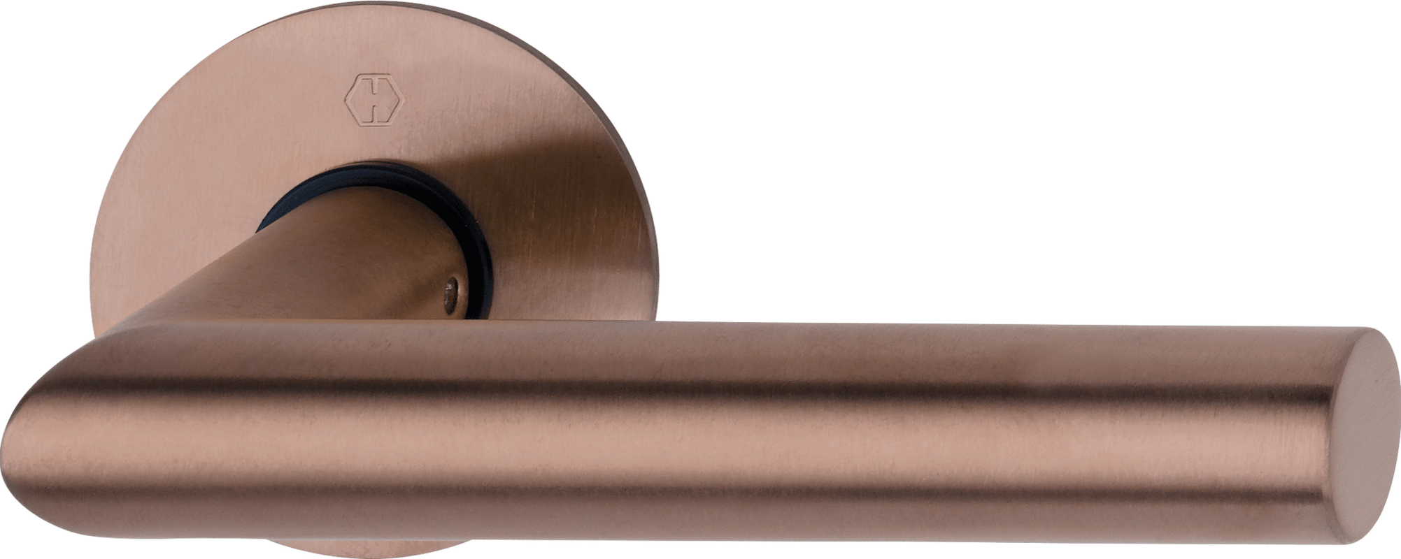 HOPPE Drückergarnitur Amsterdam E1400Z/849N, ohne Schlüsselrosette, rund, Vierkant 8mm, DIN Links-Rechts, Türstärke 35 - 45mm, mit Stütznocken, kupferfarben satiniert-Resista mit Rückholfeder