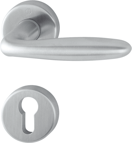 HOPPE Drückergarnitur Verona E1800Z/42KV/42KVS, Rosette, rund, Profilzylinder gelocht, Vierkant 8mm, DIN Links-Rechts, Türstärke 37 - 42mm, mit Stütznocken, edelstahl matt mit Rückholfeder