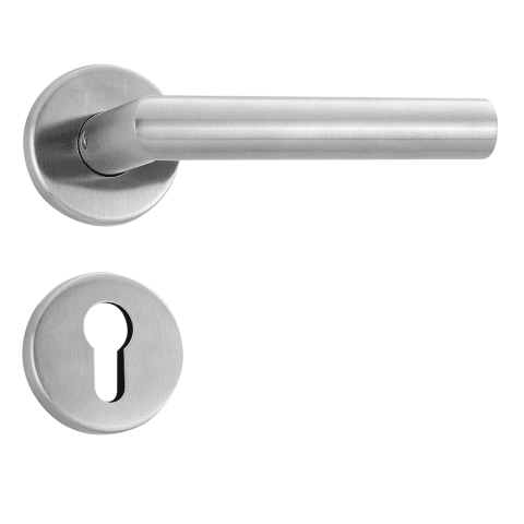 BKS Drückergarnitur FORTE B 7290; Abdeckung: mit Rosetten; Form: rund; Vierkant: 8 mm; Material: Edelstahl; Befestigungsart: verdeckt verschraubt; Befestigungstechnik: mit Stütznocken; Basis: Drückerg