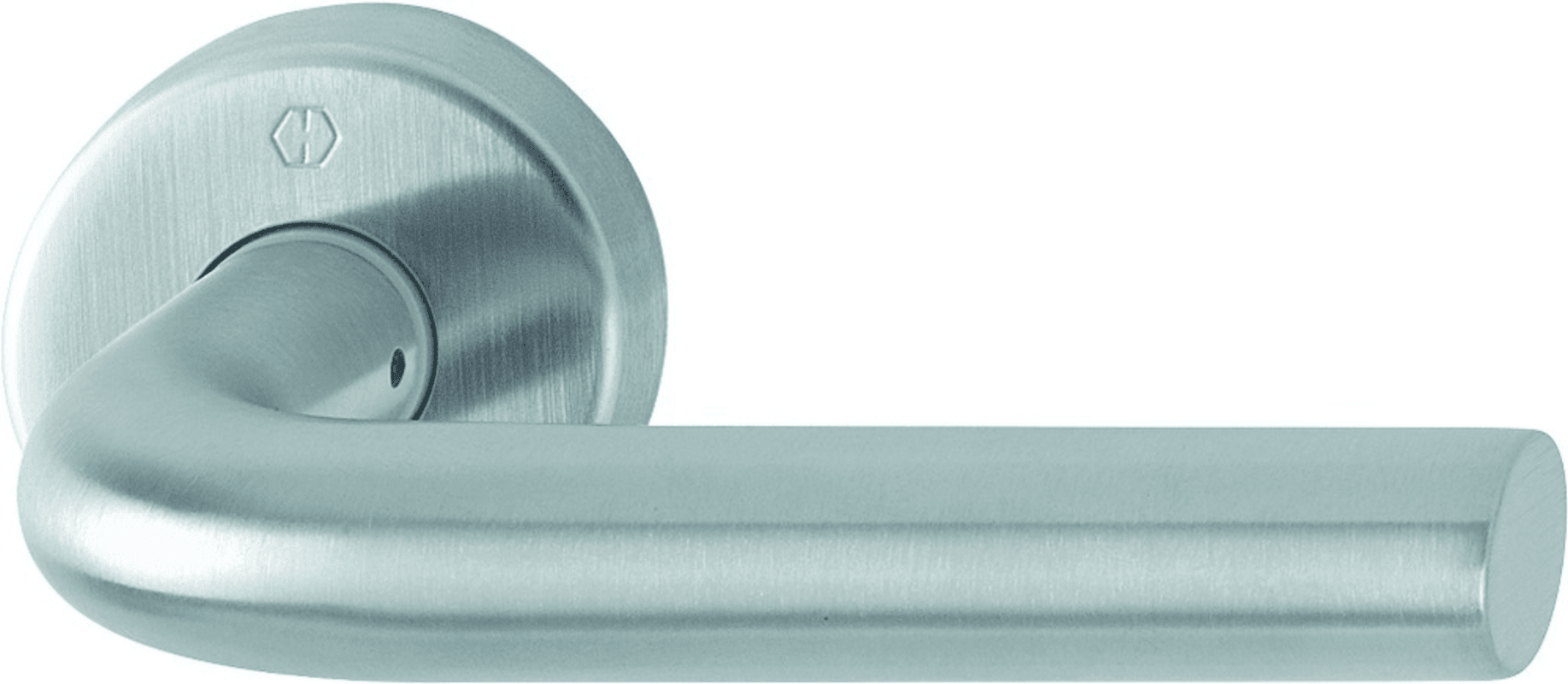 HOPPE-Edelstahl-Rosetten-Türgriff-Halbgarnitur mit Rosetten-Montagemodul, ohne Schlüsselrosette, für Außentüren (Innenseite): • Lagerung: Türgriff lose, Rückholfeder rechts/links verwendbar, wartungsfreies Gleitlager • Verbindung: HOPPE-Schnellstift mit HOPPE-Vollstift, vormontiert in der Unterkonstruktion • Unterkonstruktion: Stahl; für Aluminium-, Holz- und Kunststofftüren • Befestigung: verdeckt, zusätzliche 4-fach diagonale Befestigungs-Möglichkeit, für Mehrzweckschrauben Lieferung ohne Schlüsselrosette - passende Schlüsselrosette E42HS