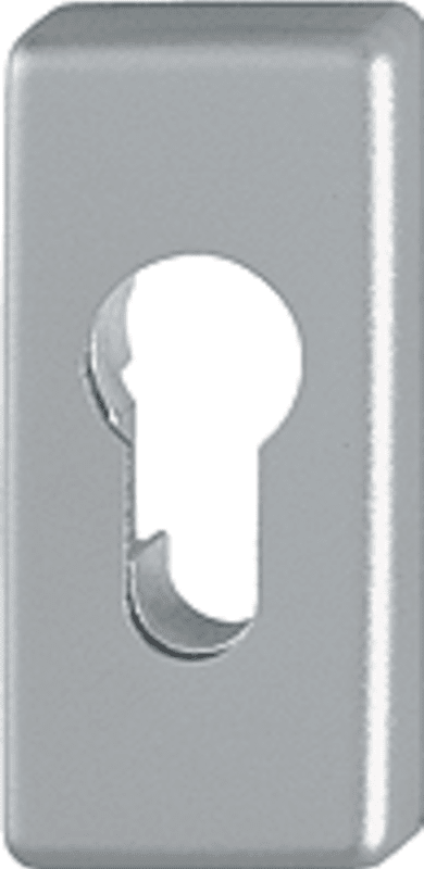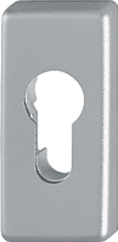 HOPPE® Schlüsselrosette 44S; Material: Aluminium; Befestigungsart: verdeckt verschraubt; Befestigungstechnik: ohne Stütznocken; Form: eckig; Lochung: Profilzylinder gelocht; Stärke Abdeckung: 8 mm; Einsatzbereich: Profiltür; Basis: Schlüsselrosette; DIN-Richtung: DIN Links-Rechts; Breite: 33 mm; Länge: 72 mm; Oberfläche: eloxiert; Farbton: stahlfarbig matt; Türart: Außentüren,Rahmentüren; Türwerkstoff: Aluminium,Kunststoff; Schraublochabstand: 50 mm; Material Unterkonstruktion: Zamak