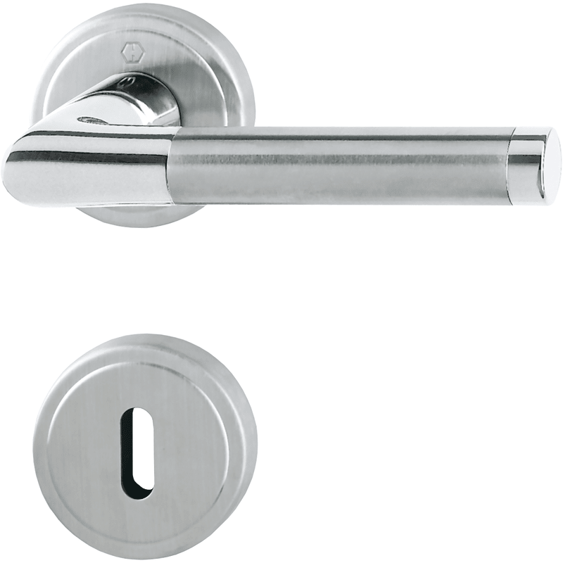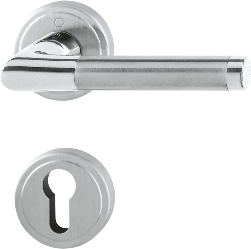 HOPPE-Messing-Rosetten-Türgriff-Garnitur mit Schlüsselrosetten für Innentüren: • geprüft nach DIN EN 1906: 37-0140A, Objekt-Garnitur • Lagerung: Türgriffe lose, Rückholfedern rechts/links verwendbar,