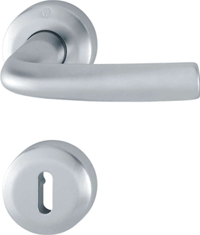 Messing-Innentür-Rosetten-Garnitur (Türgriff-Garnitur): geprüft nach DIN EN 1906 (Benutzungs-Kategorie 3), Türgriffe mit HOPPE-Schnellstift-Verbindung (mit HOPPE-Vollstift), Rosetten mit Kunststoff-Un