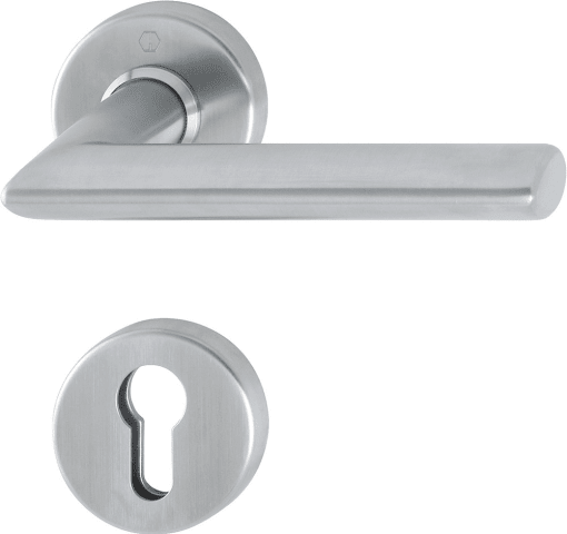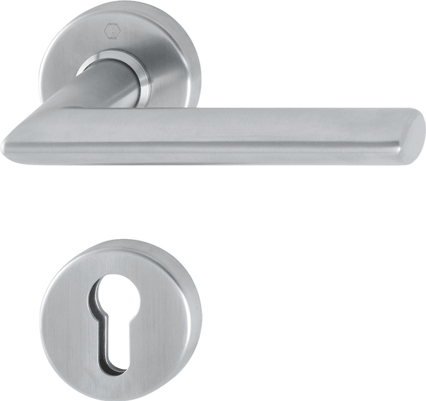 Edelstahl-Rosetten-Innen-Halbgarnitur: Türgriff lose für HOPPE-Schnellstift-Verbindung (mit HOPPE FDW-Vollstift); Rosetten mit Stahl-Unterkonstruktion und Stütznocken, vorgerichtet für verdeckte, lock