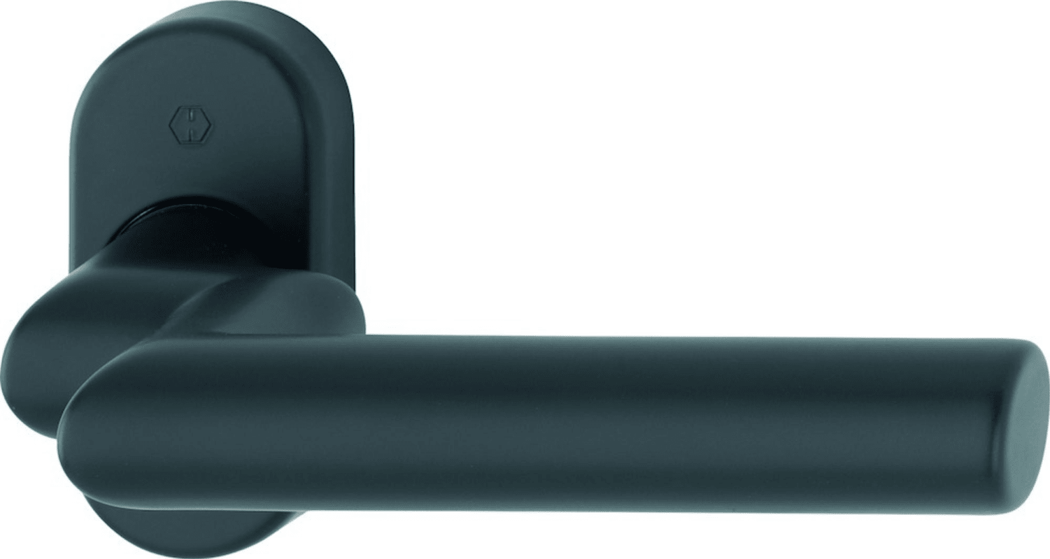 HOPPE für Feuerschutz Halbgarnitur Amsterdam FS-1400GF2/55, ohne Schlüsselrosette, oval, Vierkant 9mm, DIN Links-Rechts, mit Stütznocken, schwarz matt eloxiert festdrehbar
