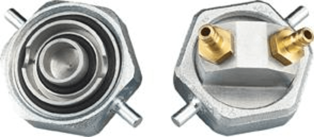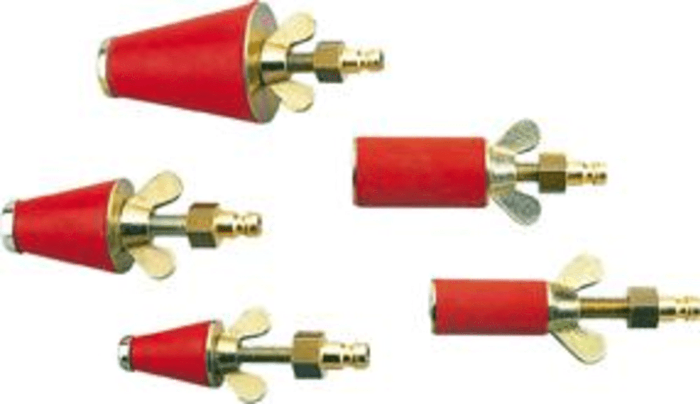 Lieferung: 4-bar-Druckpumpe, Druckbehälter, Gummigebläse, Prüfschlauch, Steckrohr, 4-teilig, mit Gasprüfstopfen und Einrohrzählerkappe.