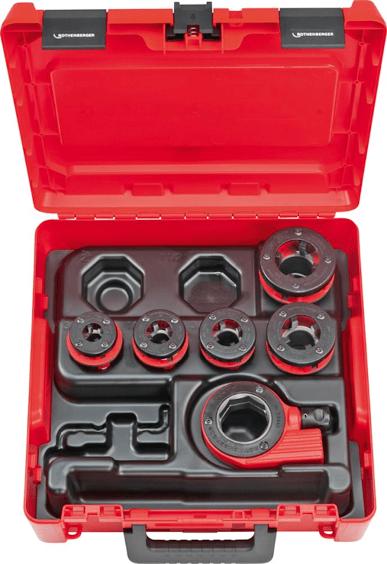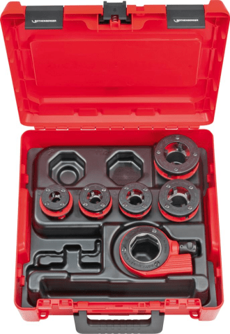 Gewindeschneidkluppen-Garnitur SUPER CUT• Schneidbacken mit sehr hohen Standzeiten aus hochwertigem und vergütetem Stahl • Schnelleres Schneiden durch optimale Schneidgeometrie mit erweiterten Spanna