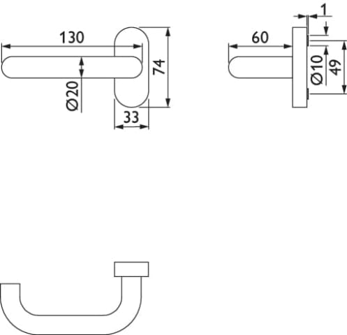 RR-Drückerlochteil 1801 / 20 mm Ø BASIC 01, mit Rosette 2085 fest/drehbar mit Rückholfeder, beidseitig verwendbar mit Doppelfeder-System, 8 mm Vierkant ohne Stift und Schrauben, Oberfl. 60 (Edelstahl