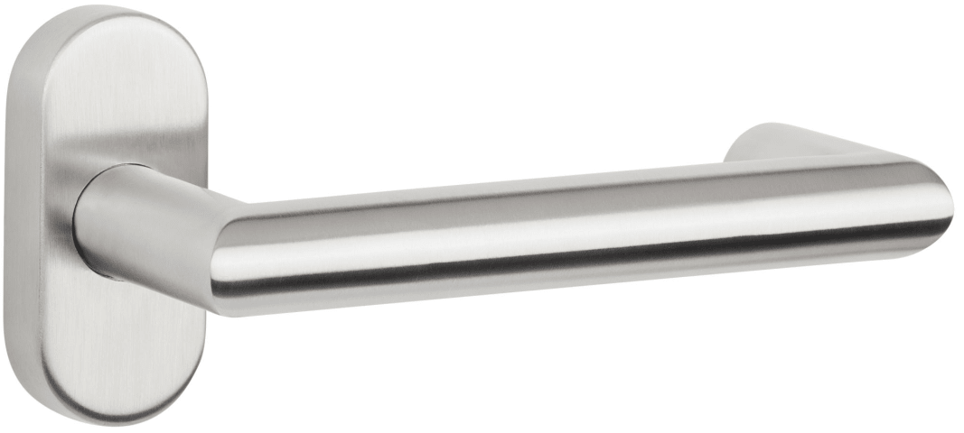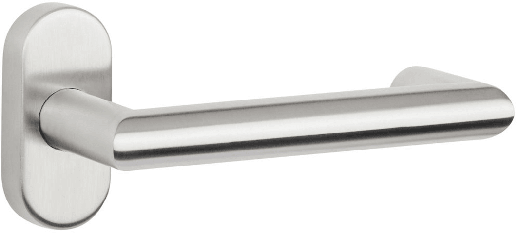RR-Drückerpaar 1808 / 20 mm Ø BASIC 08, mit Rosette 2085 fest/drehbar mit Rückholfeder, ohne Schlüsselrosetten, inkl. Vk für TS 40-90, ohne Befestigungsschrauben, Oberfl. 60 (Edelstahl matt)