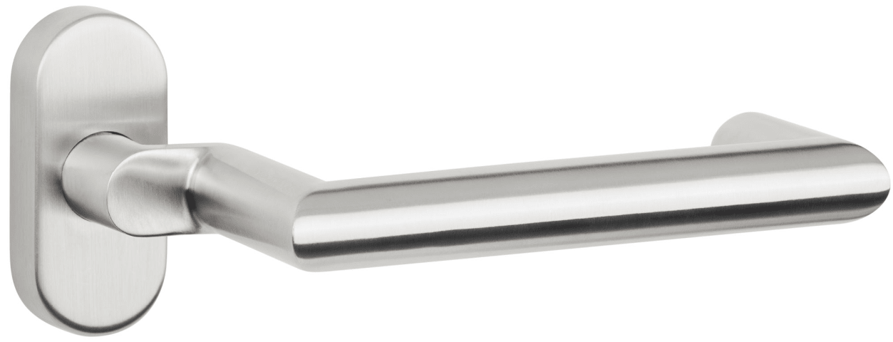 RR-Drückerpaar 1808 gk / 20 mm Ø BASIC 08, mit Rosette 2085 fest/drehbar mit Rückholfeder, ohne Schlüsselrosetten, inkl. Vk für TS 74-90, ohne Befestigungsschrauben, Oberfl. 60 (Edelstahl matt)